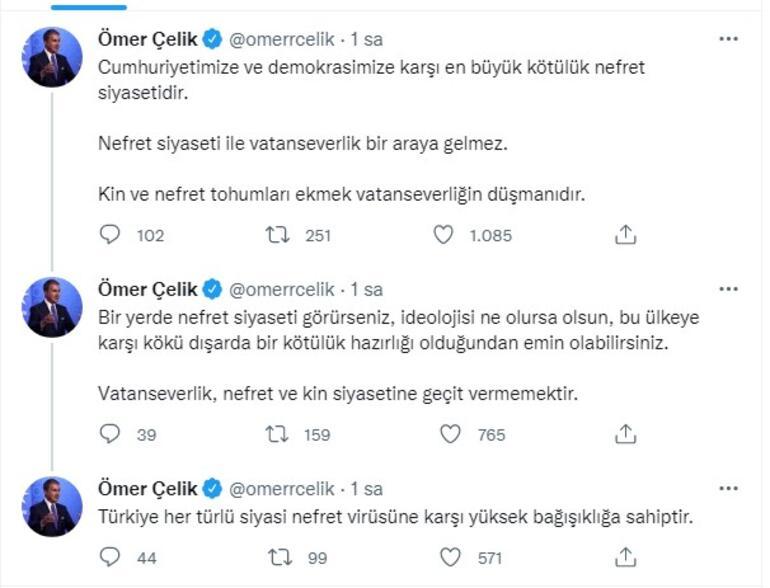 AK Parti Sözcüsü Ömer Çelik: En büyük kötülük nefret siyasetidir