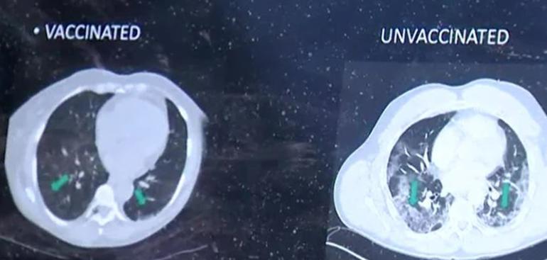 Awan aşılı bir kişinin akciğerleri ile aşı olmayan bir kişinin akciğerleri arasındaki farkı gösteren X-ışınlarını paylaştı.