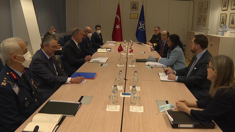 Bakan Akar, NATO Savunma Bakanları Toplantısı’na katılmak üzere geldiği NATO Karargahı’nda Kanada Savunma Bakanı Anand ile bir araya geldi.