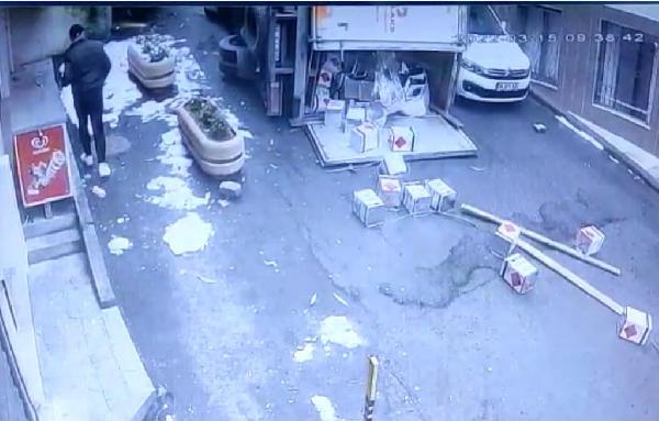 Kaza anı bir apartmanın güvenlik kamerası tarafından kaydedildi. Görüntülerde yokuş yukarı çıkan kamyonetin geri gelerek devrilmesi görülüyor. Kamyonet içindeki yapıştırıcı maddeler sokağa savruluyor. Sokak, polis tarafından araç ve yaya trafiğine kapatıldı. Kamyonetin kaldırılması için olay yerine vinç bekleniyor.