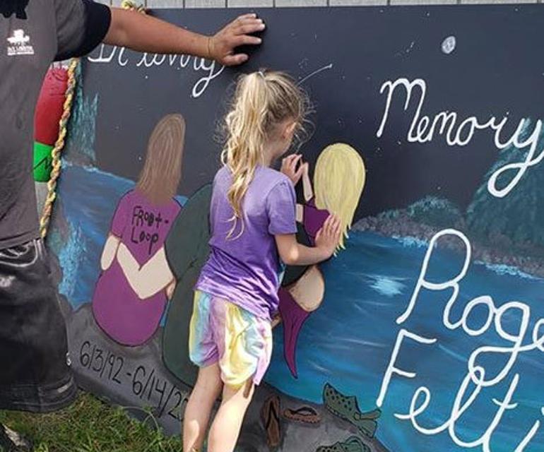 Kızı Paige, Roger Feltis için hazırlanan hatıra duvarının önünde…
