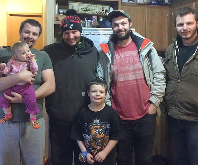 Roger Feltis (solda) kucağında kızı, erkek kardeşleri ve yeğeniyle
