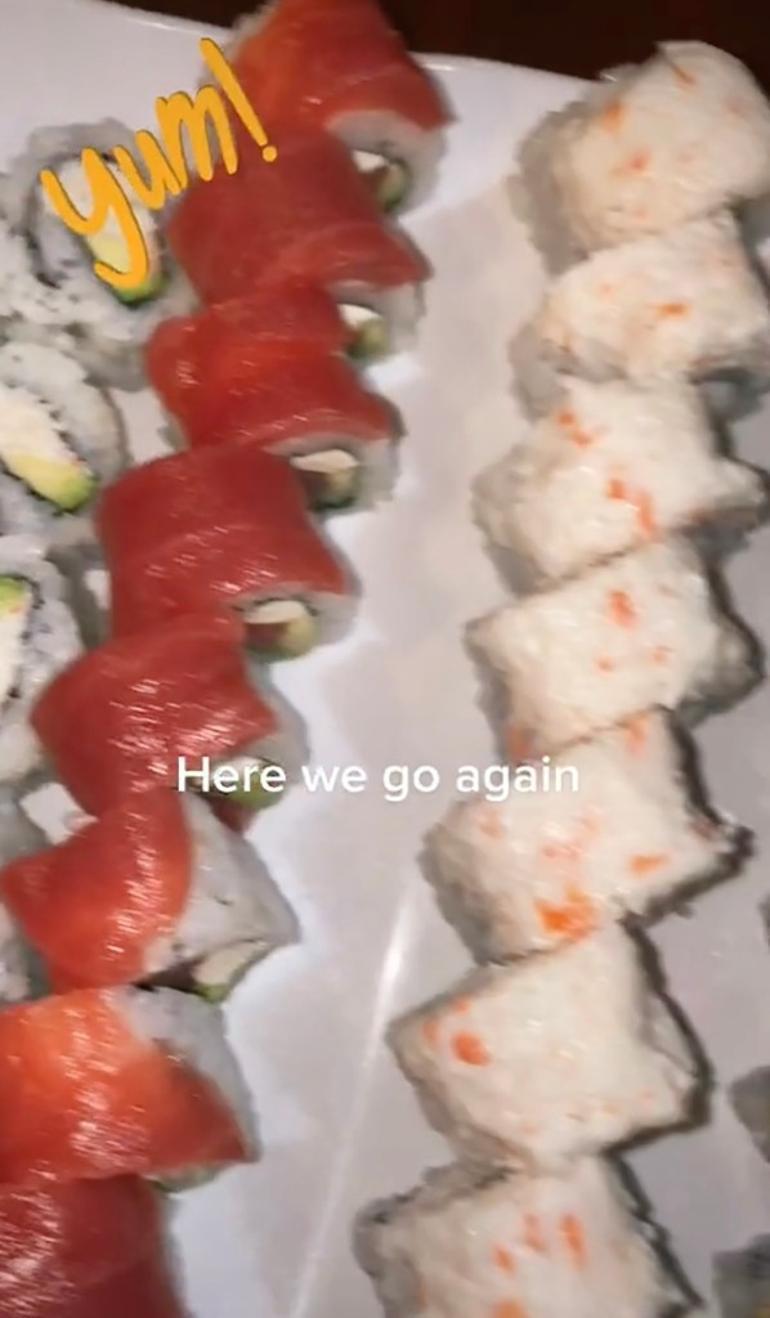 “Büyük bir suşi hayranıyım, ayda birkaç kere yiyorum. O gün restoranda iki saatten fazla zaman geçirdik çünkü o kadar çok suşi yedik ki sık sık ara verip dinlenmek zorunda kalıyorduk. Yemekten sonra arabama bindiğimde kontağı çevirmeden önce yarım saat arabanın içinde beklemek zorunda kaldım. Karnım taş gibi olmuş ve şişmişti.” diyen genç kadın geceyi erkek arkadaşının evinde geçirmek için oraya gitti.