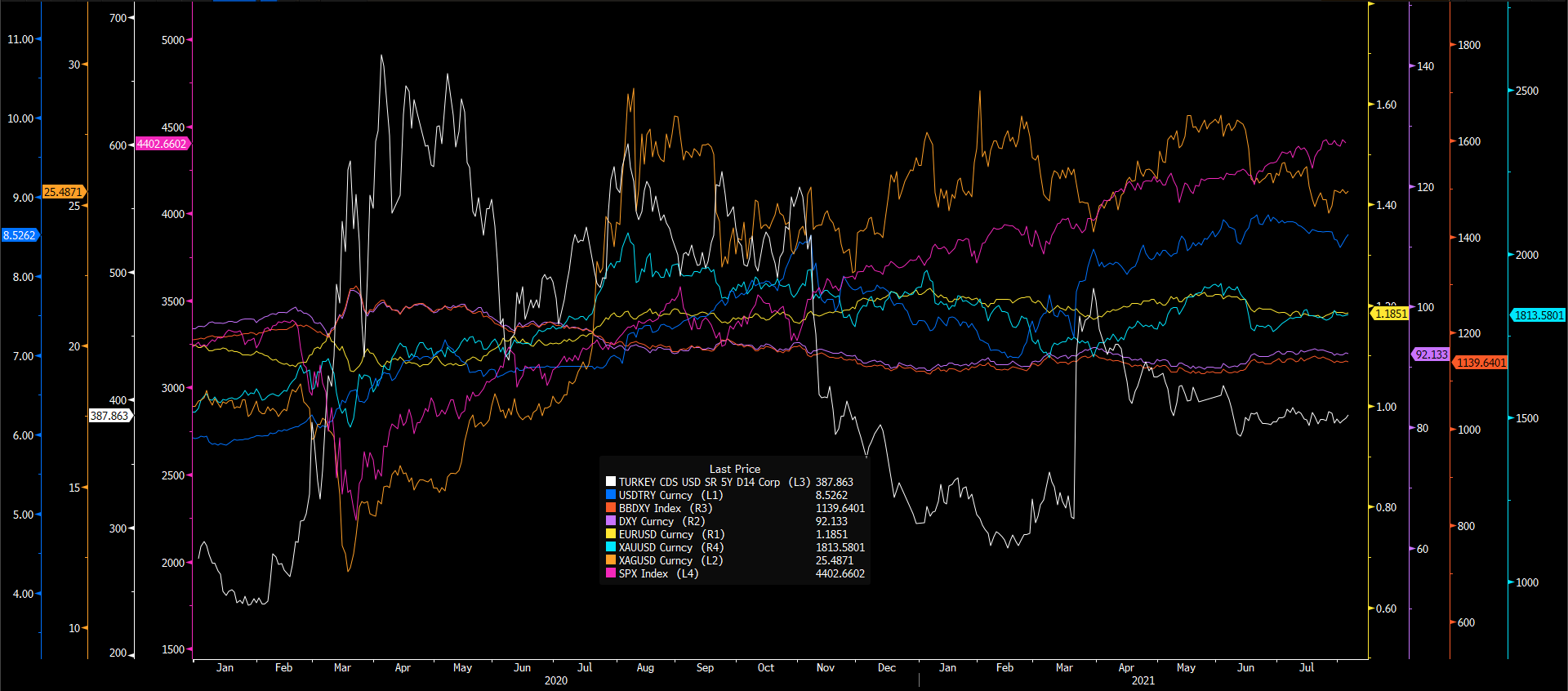 • Türkiye 5 yıllık CDS 387.86 ile 400 seviyesi altında hareket etmektedir.