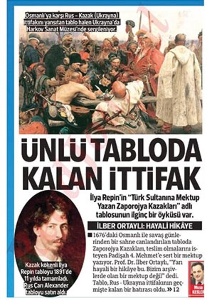 1676’daki Osmanlı-Rus savaşında da Ruslarla müttefiktiler. Osmanlı kuvvetlerine karşı çarpışıyorlardı. Ukrayna kökenli Rus ressam İlya Repin, 1880 yılında işte bu savaşta yaşandığı iddia edilen bir sahneyi tablosuna yansıtmıştı. Tablonun hikâyesine göre, Sultan 4. Mehmed, 1676’daki savaş sırasında Zaporojya bölgesindeki Kazaklara bir ferman göndererek “Direnmeden teslim olun, kendinizi katlettirmeyin” diye bir ferman gönderdi. Ancak Kazaklar, bu teklifi kabul etmedikleri gibi kendilerince alaya alarak ağır ifadeler içeren bir karşı mektupla cevap verdi. İlya Repin de bu mektubu yazdıkları anı “Türk Sultanına Mektup” adlı tablosunda resmetti.