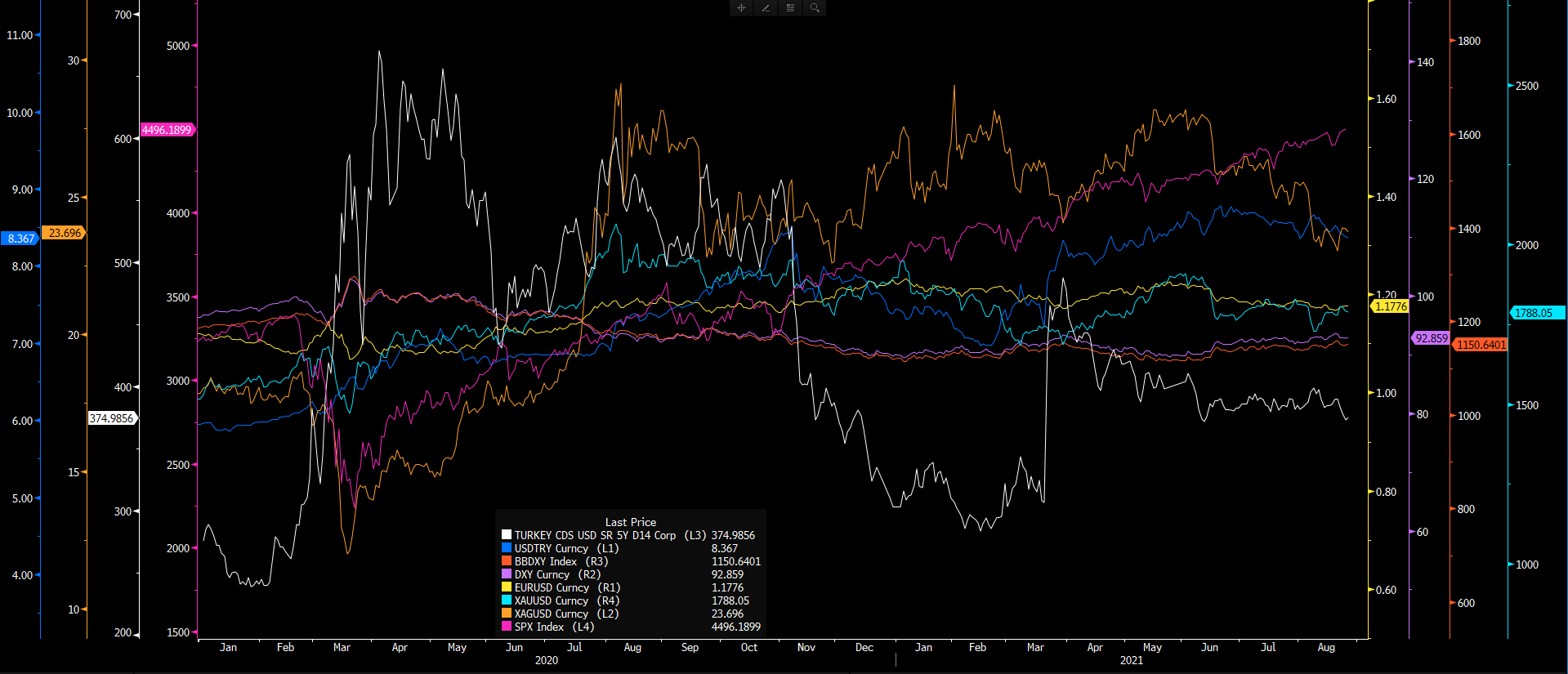 Jackson Hole Fed Başkanı Powell konuşması öncesinde risk algısında iyimserlik sürerken, ABD endekslerinde rekor tazelemeler gündemi oluşturmaktadır. Powell’ın varlık alımlarını azaltma konusunda sert iniş yapmayacağı ve bunu delta varyantı kaynaklı risklere bağlayacağı senaryosu fiyatlamalara dahil olmaktadır. Endeks tarafı güvercin Powell ihtimalini güçlü bulurken, ABD tahvil dinamiklerinden bir miktar şahin Powell senaryosu devreye girmektedir. Özellikle ABD 10 yıllık tahvilde yukarı yönlü hareket, varlık alımlarını azaltma konusunda bir hamle gelebileceğini fiyatlamaktadır. 10 yıllık 200 günlük ortalaması (1,3217) üzerinde %1,3458 seviyesinde hareket etmektedir.