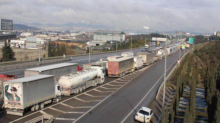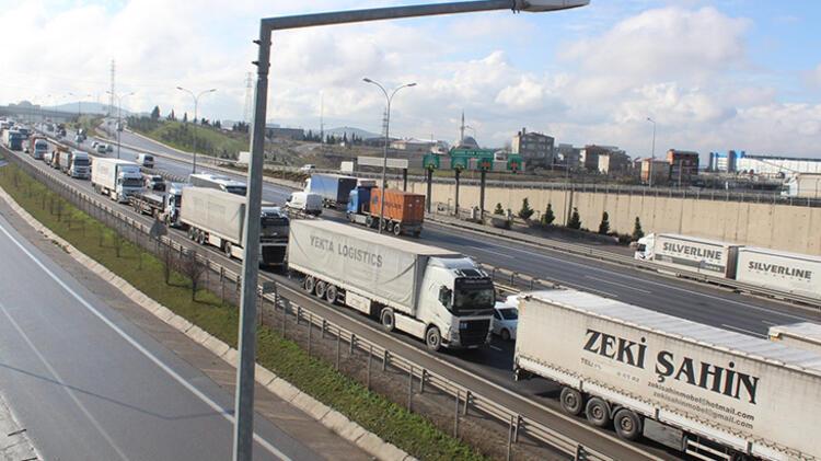 TEM yolu Şekerpınar gişelerinden itibaren 8 kilometrelik TIR ve kamyon kuyruğu oluştu. Trafik, bu noktada neredeyse durma noktasına geldi.