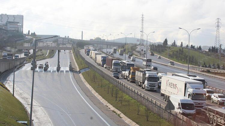 Kocaeli’nin Çayırova ilçesindeki TEM yolu Şekerpınar gişeleri ve D-100 yolu Kocaeli-İstanbul sınırında önlem alan trafik ekipleri, TIR ve kamyonlar sürücülerinin İstanbul’a geçişine izin vermedi.