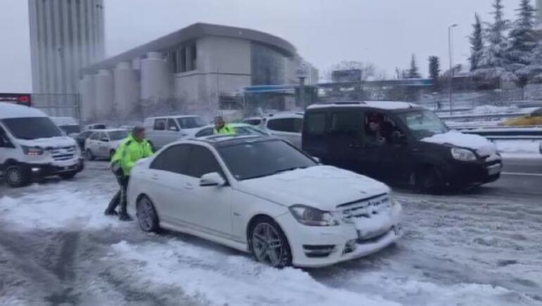 İstanbul Bağcılar’da TEM Bağlantı Yolu İSTOÇ mevkiinde kar nedeniyle yolda kalan araçları polisler iterek kurtardı. Sabah saatlerinde İSTOÇ mevkiinde karla kaplı yol nedeniyle bazı araçlar güçlükle ilerlerken, bazıları da yolda kaldı. Yolda kalan araçları polisler iterek kurtarmaya çalıştı. Polisler zaman zaman yoldaki diğer araç sürücüleri ve yolcularından da yardım istedi. Polisler ve vatandaşlar otomobilleri iterek kaldıkları noktalardan kurtardı.