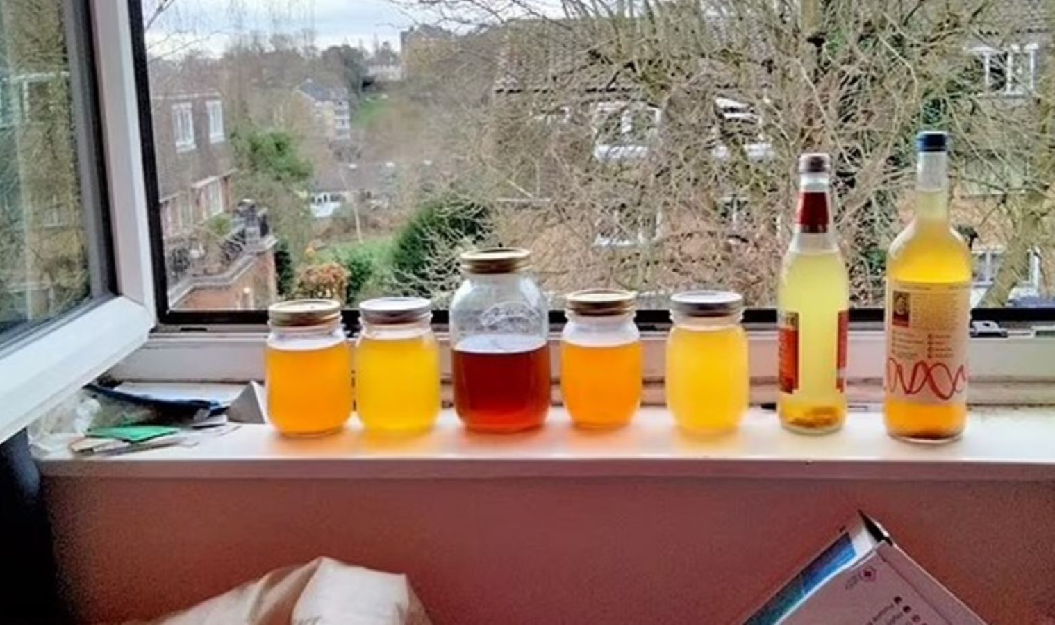 Matadeen tarafından içilmek üzere doldurulmuş idrarla dolu kavanozlar