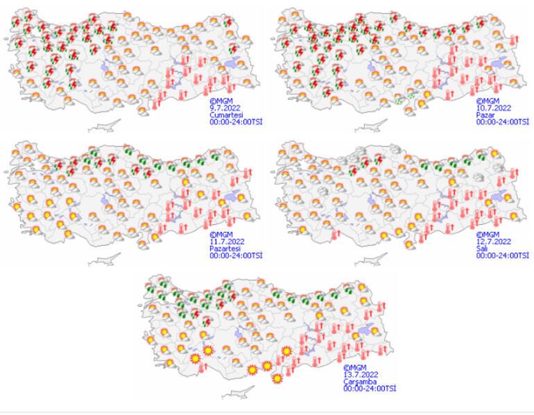 Meteoroloji Genel Müdürlüğü, ”Yapılan son değerlendirmelere göre 9 Temmuz 2022 Cumartesi günü öğle saatlerinden itibaren Eskişehir ve Bilecik illeri geneli, Bursa’nın güneydoğu kesimleri (Yenişehir, İnegöl, Keles, Kestel) ile Kütahya çevrelerinde (Kütahya, Aslanapa, Tavşanlı, Altıntaş, Domaniç) yerel olmak üzere kuvvetli sağanak ve gök gürültülü sağanak yağışlar beklendiğinden meydana gelebilecek yıldırım, sel, su baskını, ulaşımda aksamalar, yağış anında kuvvetli rüzgar ve yerel dolu yağışı gibi olumsuzluklara karşı dikkatli ve tedbirli olunmalıdır” ifadelerine yer verildi.