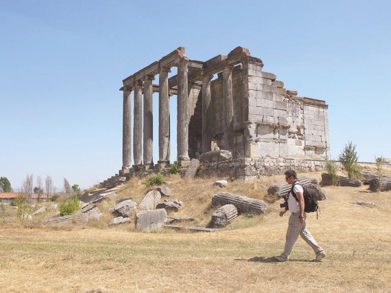 Anayoldan ayrılıp Aizanoi’a ulaşmak için iki yanı ağaçlıklı, güzel bir yoldan yürümek gerekiyor. En parlak dönemini 2’nci ve 3’üncü yüzyıllarda yaşayan Aizanoi’nun, Bizans döneminde piskoposluk merkezi olmak dışında, Anadolu’nun en büyük Zeus Tapınağı’nı barındırmak gibi bir önemi var. Ayrıca büyük bir antik tiyatroyla buna bitişik bir stadion, biri mozaikli olmak üzere iki hamam, ikisi hâlâ kullanılabilir durumda olan beş köprü, antik bir baraj, sütunlu caddeler ve mezar alanları, kentin tarihi kalıntılarından. Su perisi Erato ile efsanevi Kral Arkas’ın birleşmesinden doğduğu rivayet edilen Azan, Kocaçay Irmağı’nın yukarı kesimindeki bir mağarada yaşarmış. Azan ile ilgili bilgilerimiz sınırlı olsa da Zeus Tapınağı’nın çevresinde yapılan kazılarda, MÖ 3000’li yıllara ait yaşam izlerine rastlanmış.