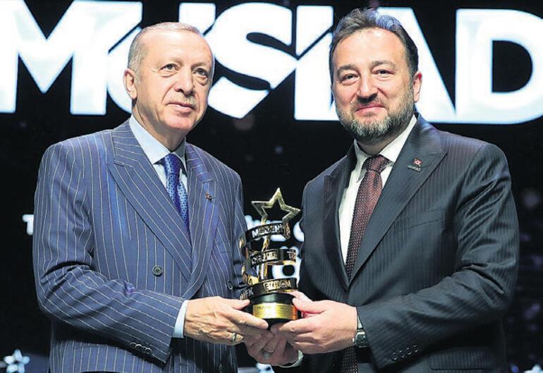 MÜSİAD tarafından verilen ‘Türkiye’nin Gücü Özel Ödülü’nü Cumhurbaşkanı Erdoğan’a, MÜSİAD Genel Başkanı Mahmut Asmalı takdim etti.