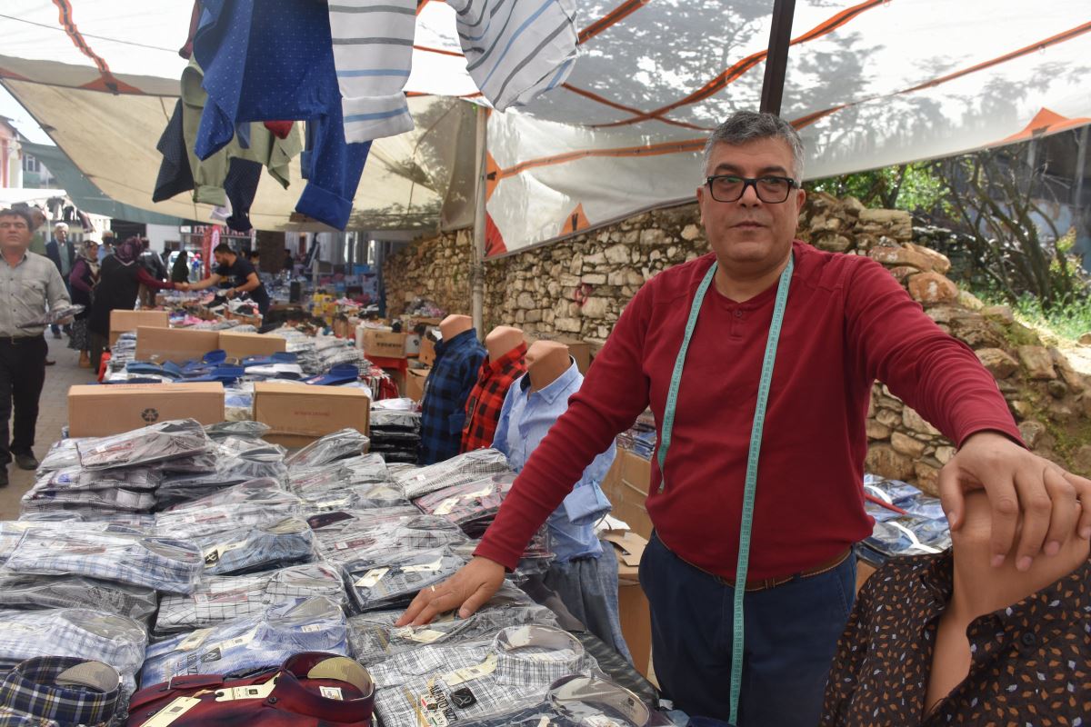 Satıcılardan Burhan Karaçam da “Ayakkabı, terlik gibi ürünler satıyoruz. Geçen senelere göre düşük ama Allah bereket versin. Allah bundan kötü etmesin. Her hafta geliyoruz. Yüzde 30-40 düşüş var geçen yılki bayram pazarlarına göre” dedi.