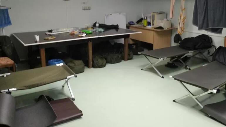 Öte yandan tesiste uyuyacak yer olmadığı için işçiler kamp yataklarında, masalarda ve bazen yerde yatıyor.
