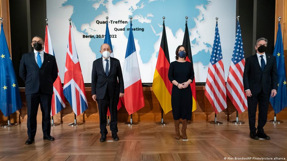 Almanya Dışişleri Bakanı Annalena Baerbock, Fransa Dışişleri Bakanı Jean-Yves Le Drian ve İngiltere Dışişleri Bakan Yardımcısı James Clevery, ABD Dışişleri Bakanı Blinken’le Berlin’de buluştu