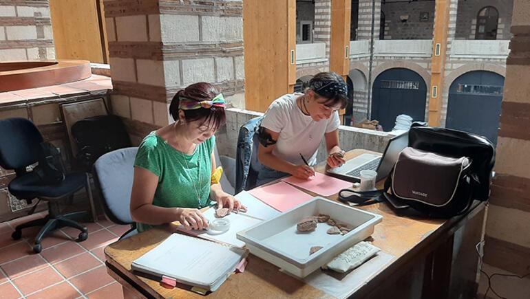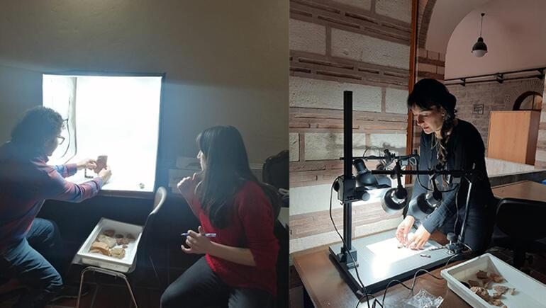 Projenin bilimsel danışmanı Özlem Sir Gavaz ve şu an TÜBİTAK bursu ile Chicago’da bulunan proje ekibinden Sema Dalkılıç müzede tabletler üzerinde çalışıyor.