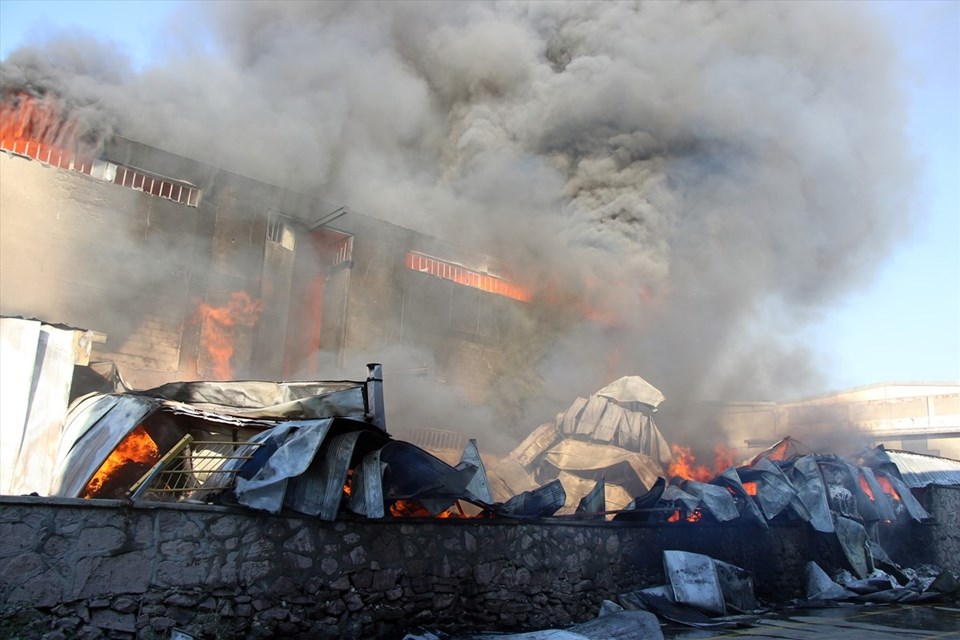 Uşak’ta bir fabrikada çıkan yangına müdahale ediliyor.