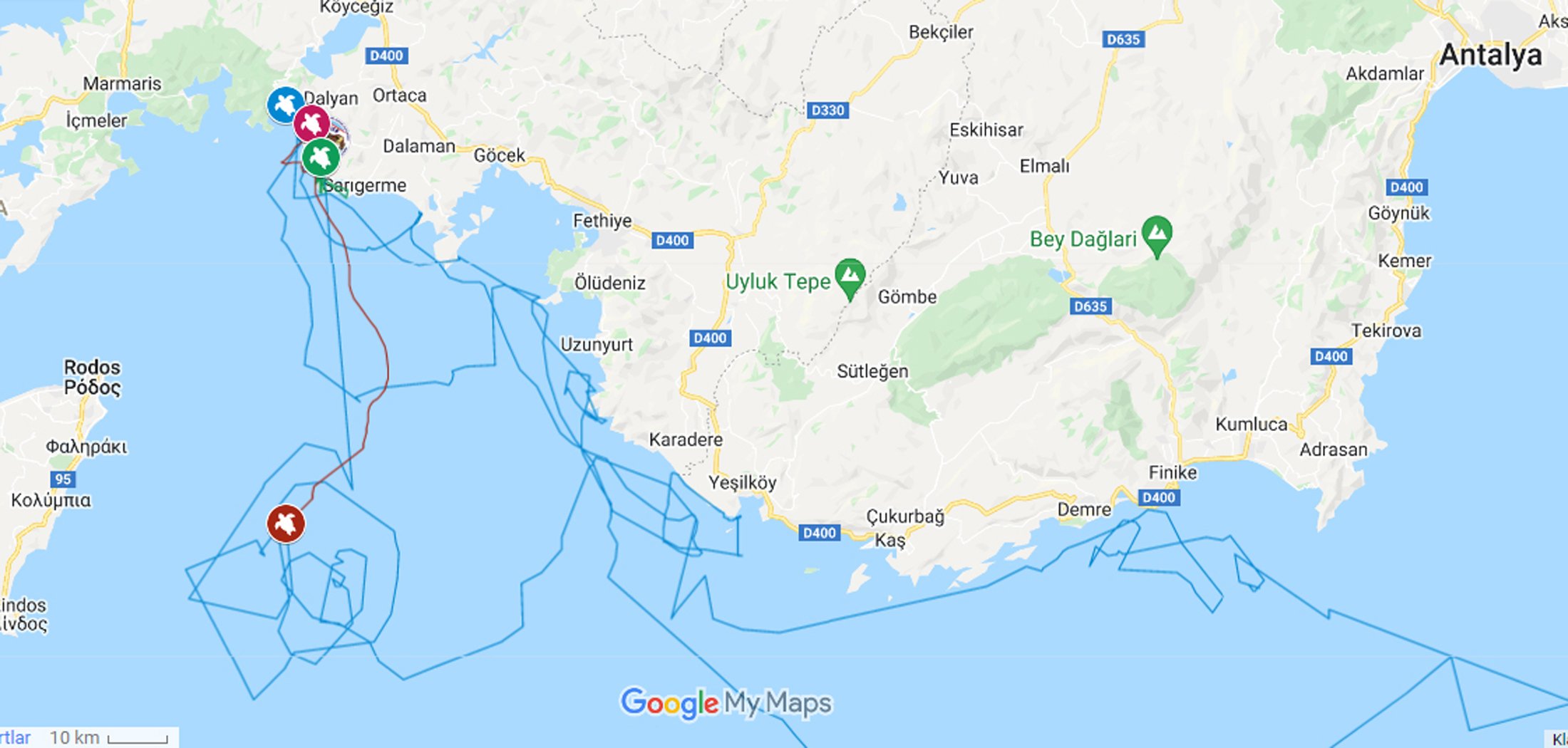 Muğla’nın Dalyan-İztuzu Plajı’nda bulunan deniz kaplumbağaları tedavi rehabilitasyon merkezi DEKAMER, Dünya Doğa Koruma Birliği’nin (IUCN) nesli tehlike altındaki türler arasında kırmızı listesinde yer alan caretta caretta ve yeşil deniz kaplumbağalarının yaşamlarını uydu takip cihazıyla yakından takip ediyor.