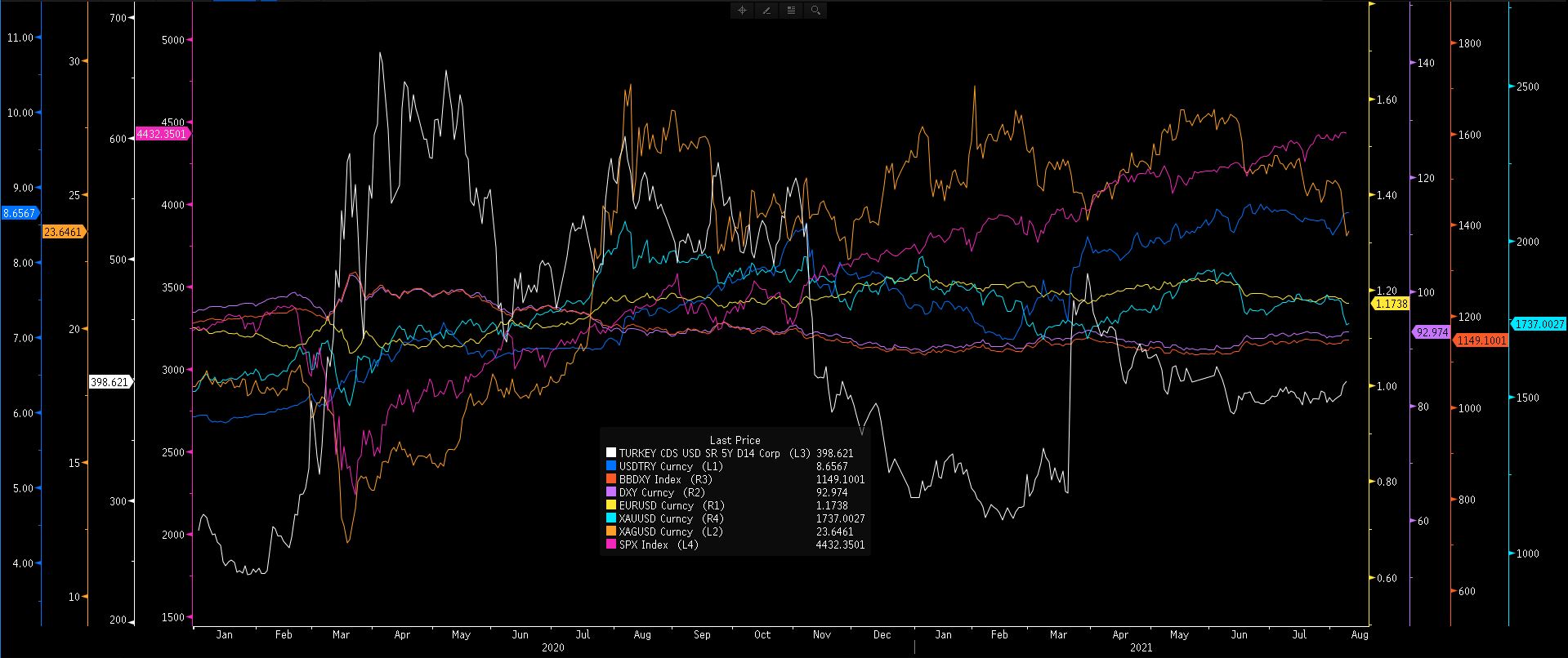 ABD tarım dışı istihdam verisi ile tetiklenen Fed varlık alımlarını azaltmalı tartışması ana gündem olurken, Fed üyelerinden Eylül – Aralık aylarında varlık alımlarının azaltılması planının açıklanması gerektiği vurgulanmıştır. Üyeler şahin olurken, son söz sahibi Başkan Powell güvercin duruşunu sürdürmektedir. Büyüme-enflasyon-istihdam dinamiklerinde pozitif sürpriz yapan verilere karşı kayıtsız kalan Fed, piyasaların algısını/fiyatlamasını karıştırmaktadır. Hisse senedi tarafı bol likiditenin devamını fiyatlarken, tahvil/$ teması Fed’in beklentilerden önce adım atabileceğini fiyatlamaktadır. Bu hafta ABD enflasyon verisi (beklenti yıllık %5,3) ile fiyatlamalar biraz daha sağlıklı olabilir.