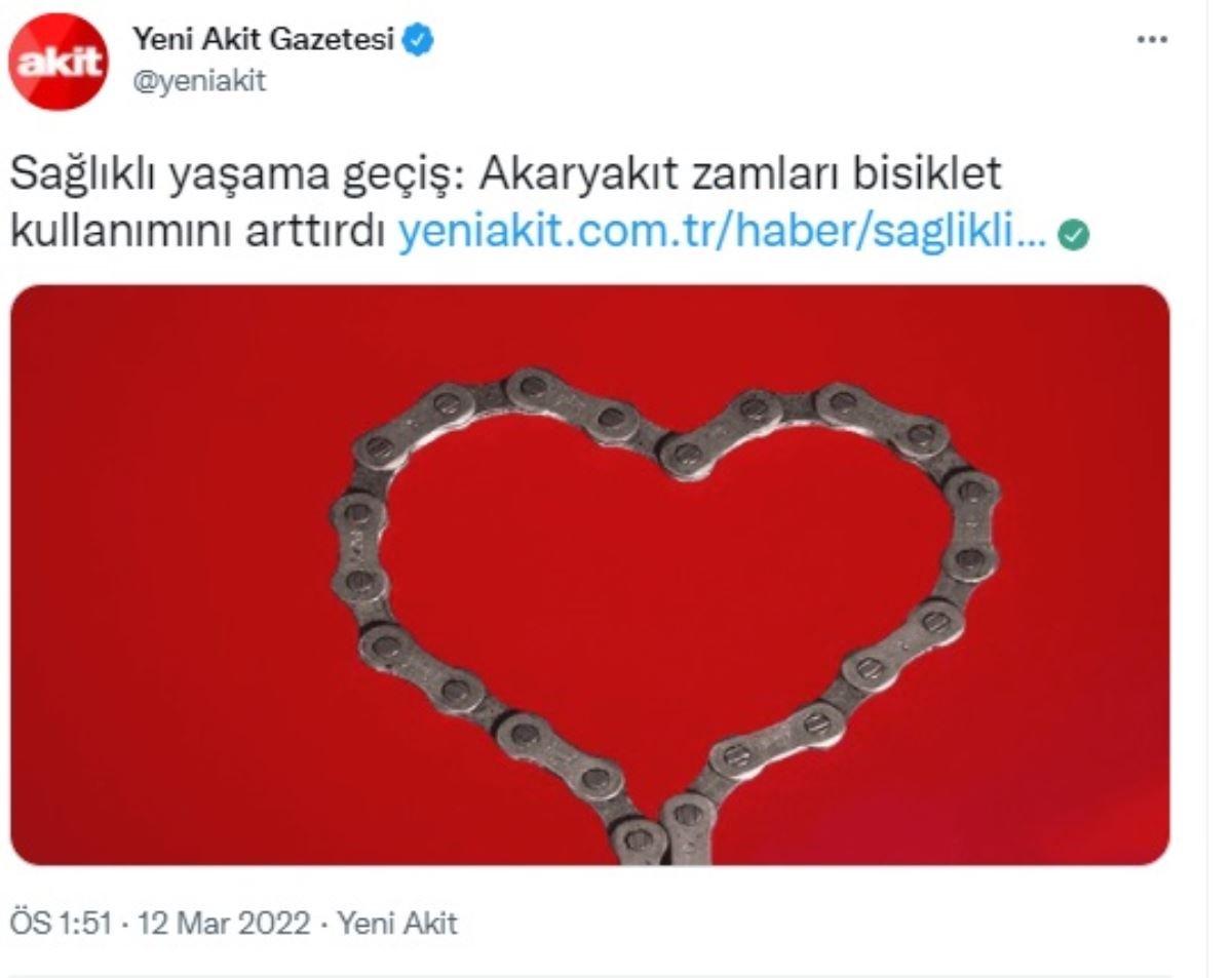 Geçtiğimiz günlerde de artan fiyatlar nedeniyle oluşan ayçiçeği yağı kuyruklarının ardından ‘Evde ayçiçeği nasıl yapılır’ başlıklı bir haber yayımlayarak tepki alan Yeni Akit, bu defa ise “Sağlıklı yaşama geçiş: Akaryakıt zamları bisiklet kullanımını arttırdı” başlıklı haber ile akaryakıt zamlarını akladı.