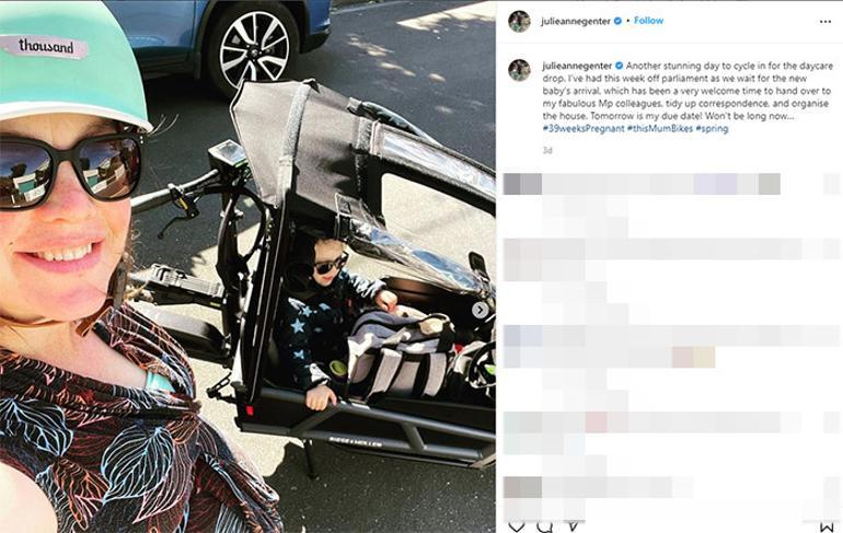 Julie Anne Genter, Instagram hesabındanda 42 haftalık hamileylen bisiklet üzerinde çekilen fotoğraflarını paylaşmış, paylaşımında #bicyclesarethebest (#bisikletlereniyisidir) etiketini kullanmıştı.