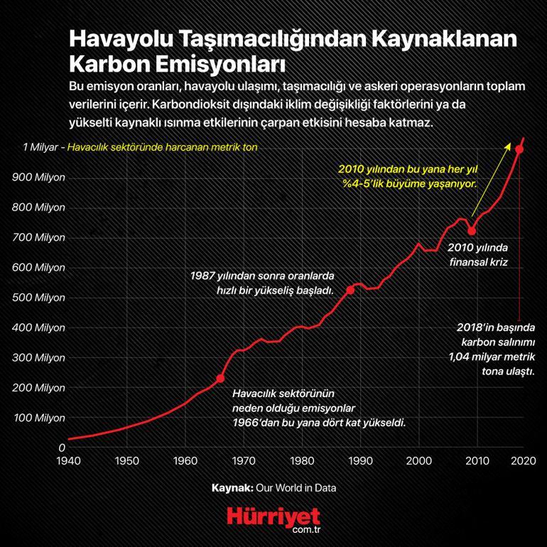 IPCC uzmanlarına göre havacılık sektörü ulaşım alanındaki karbon emisyonlarının yüzde 11,6’sını oluşturuyor olsa da, havayolu ulaşımının her geçen gün daha yoğun kullanılması, oranların hızla yükselmesine yol açıyor. Uzmanlar ayrıca, uçakların karbon salınımının atmosferin üst tabakalarında gerçekleşmesinin önemli bir sorun olduğunu düşünüyor.